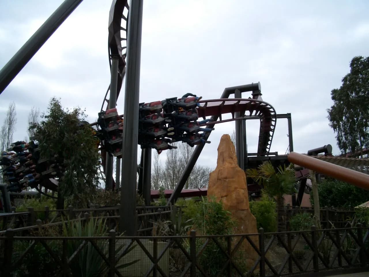 Nemesis Inferno is themed around an erupting volcano and is considered a sister coaster of Nemesis Reborn at Alton Towers.
